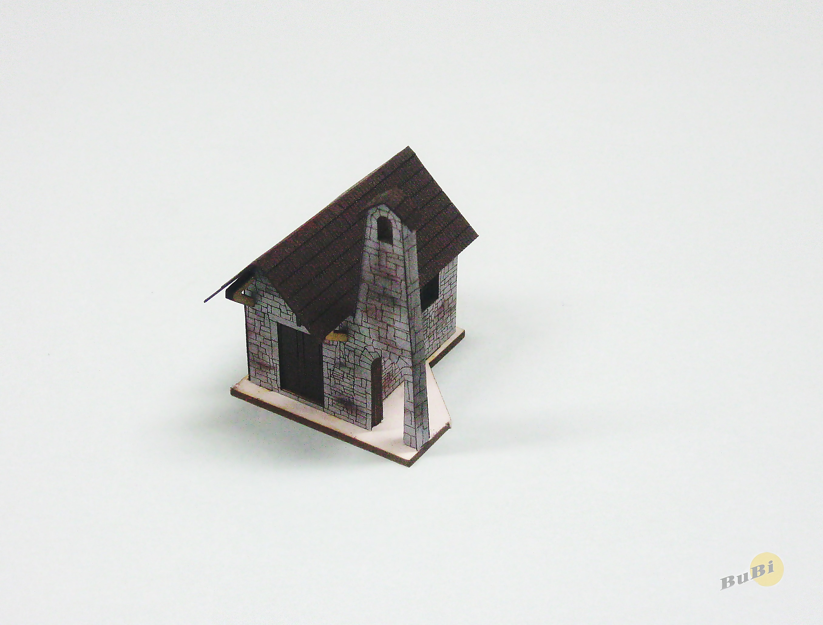 Laser-cut model obsahuje 1ks. Základem je lepenka na kterou se lepí probarvený karton a dílce se dřeva.