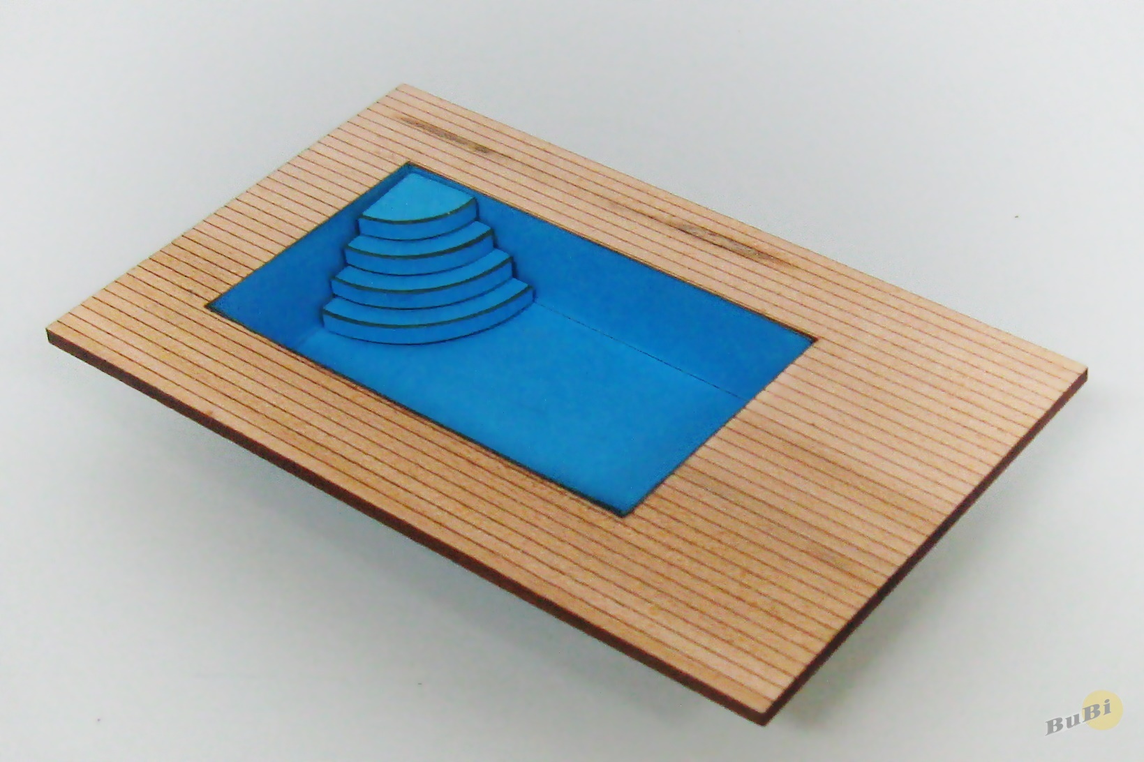 Laser-cut model obsahuje 1ks. Základem je lepenka na kterou se lepí probarvený karton a dílce se dřeva.