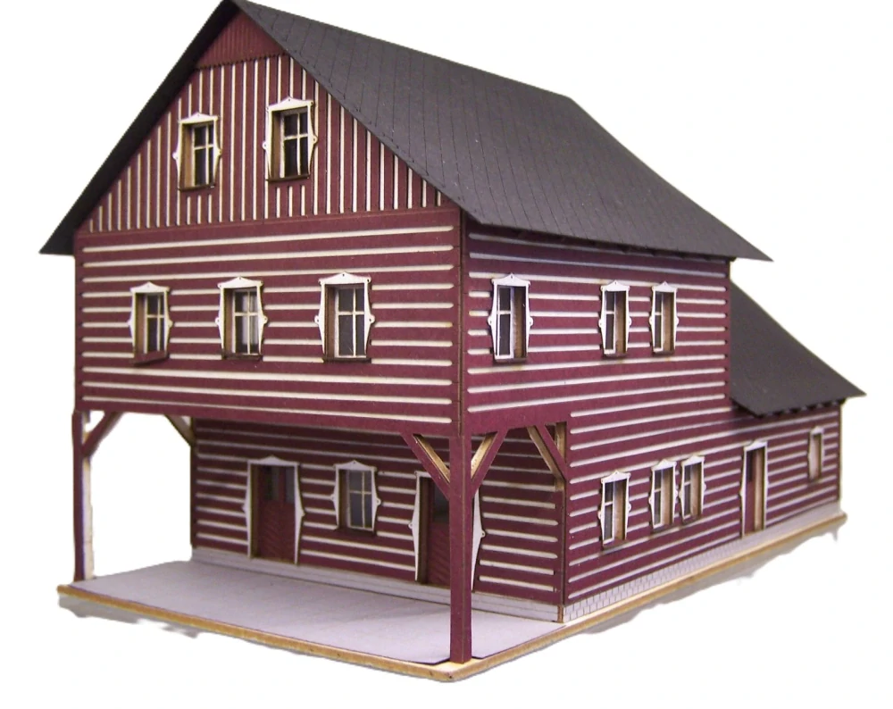 Model vyrobený Laser-Cut technologií. Materiál lepenka, barevný grafický karton, dřevo.