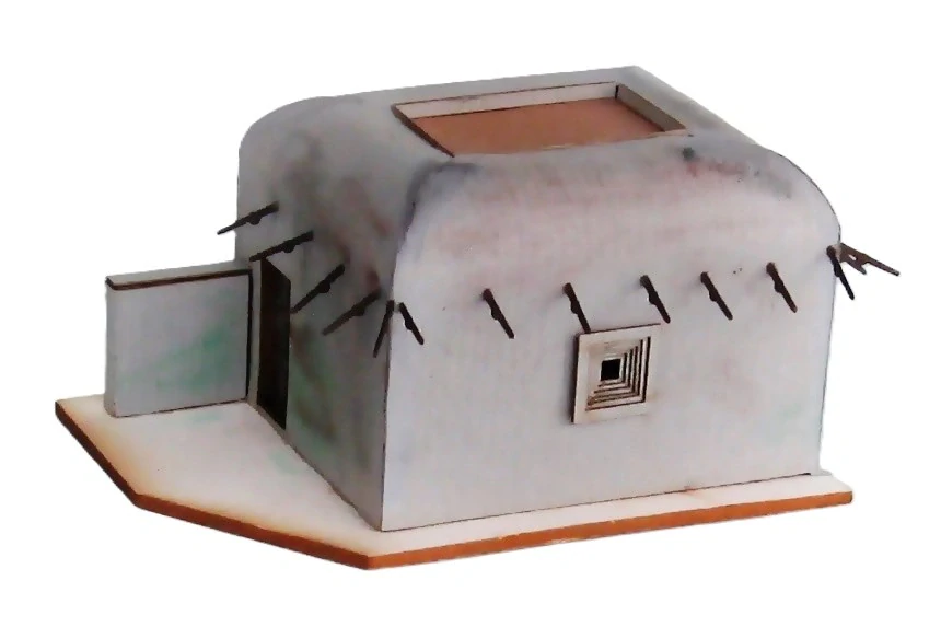 Model vyrobený Laser-Cut technologií. Materiál lepenka, barevný grafický karton, dřevo.