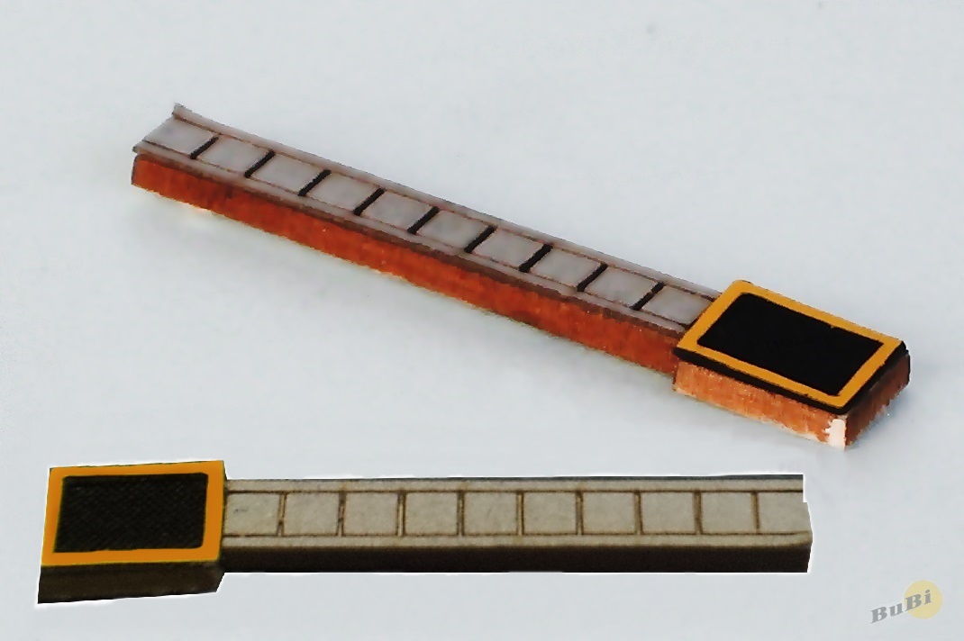Laser-cut model obsahuje 4ks. Základem je lepenka na kterou se lepí probarvený karton a dílce se dřeva.