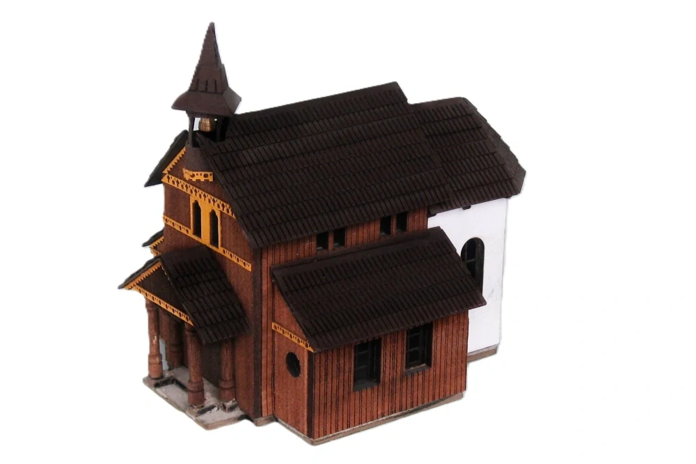 Model vyrobený Laser-Cut technologií. Materiál lepenka, barevný grafický karton, dřevo.