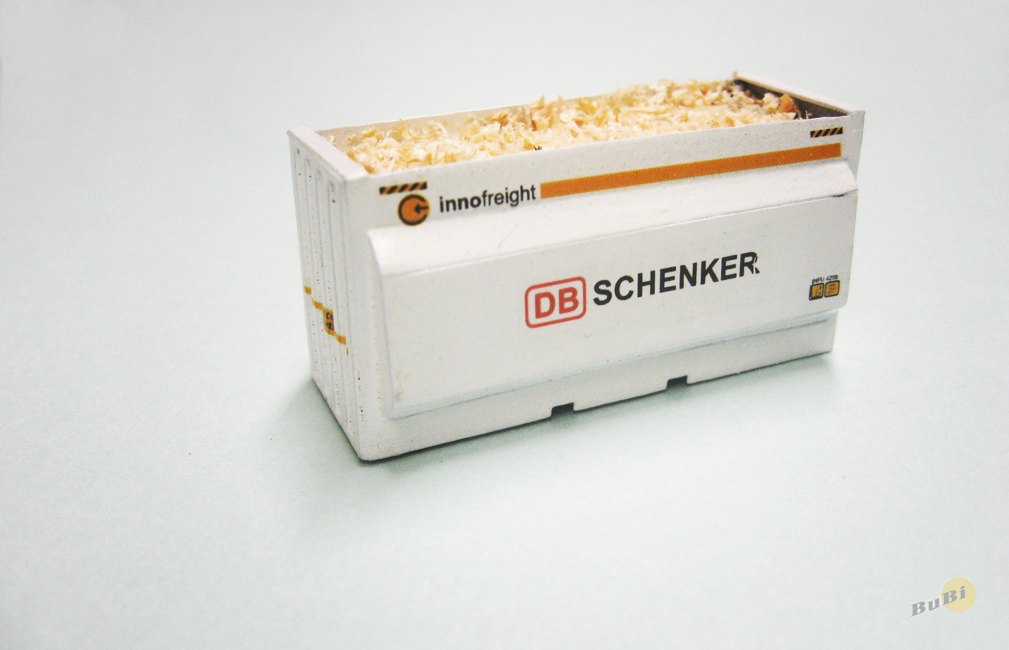 Hotový model kontejneru na štěpky. Vhodné pro vozy PIKO, tillig, Busch