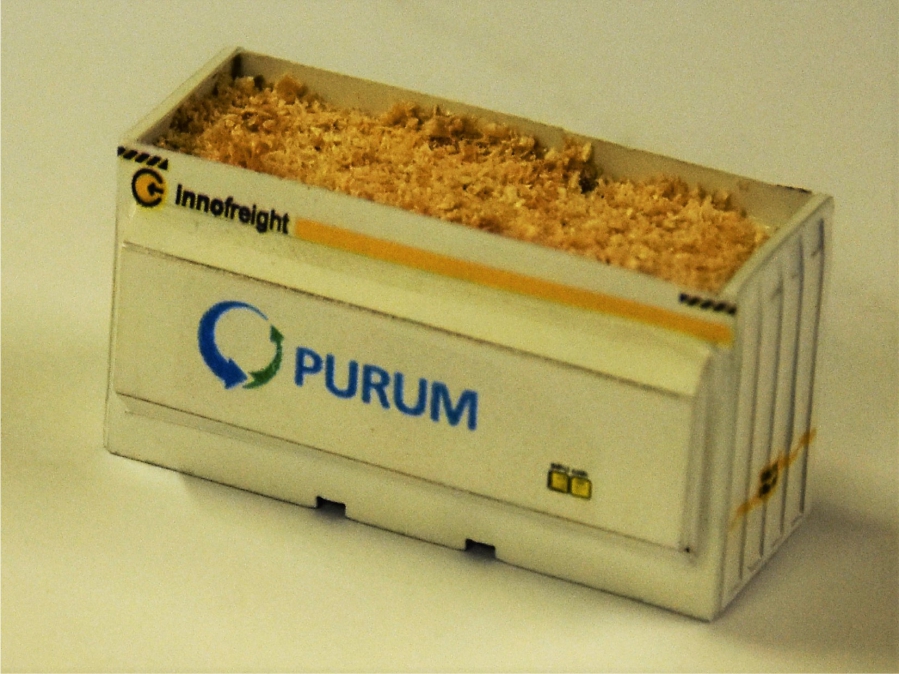 kontejner na dřevěnou štěpku - vhodné pro plošinové vozy PIKO a Fleishmann. Vyrobeno pomocí 3D tisku