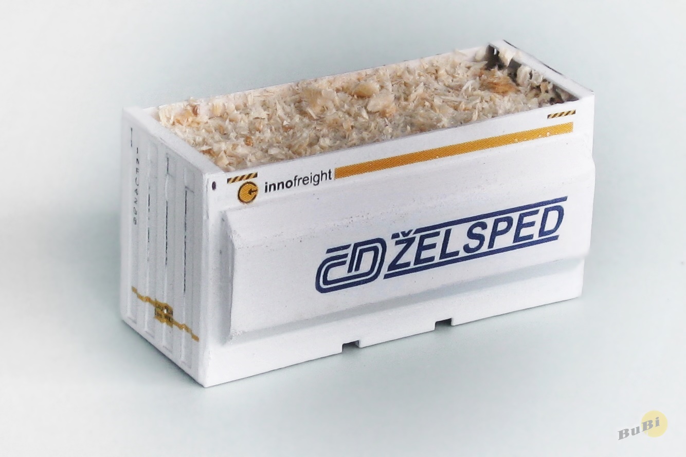 kontejner na dřevěnou štěpku - vhodné pro plošinové vozy PIKO a Fleishmann. Vyrobeno pomocí 3D tisku