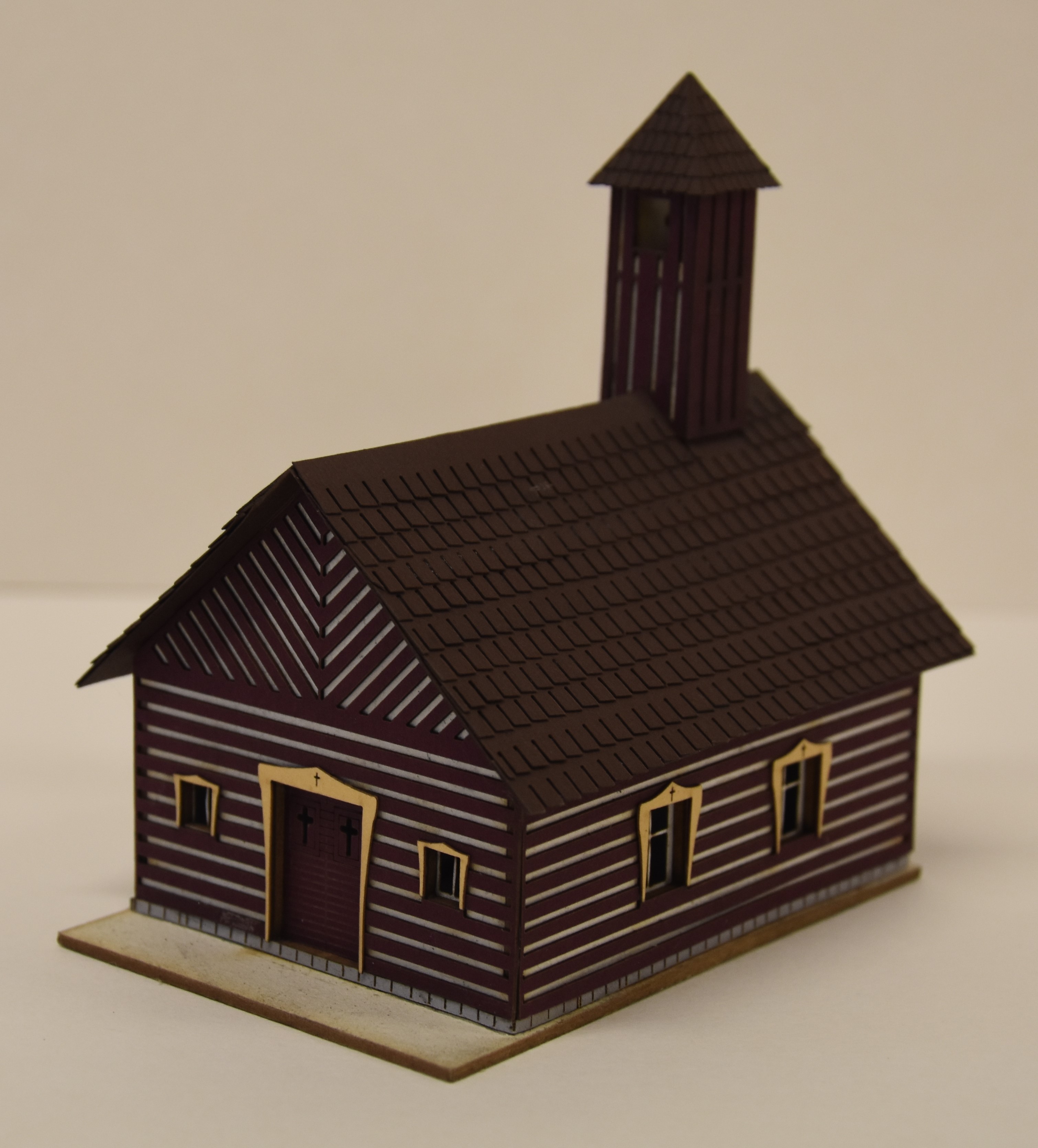Model vyrobený Laser-Cut technologií. Materiál lepenka, barevný grafický karton, dřevo.
