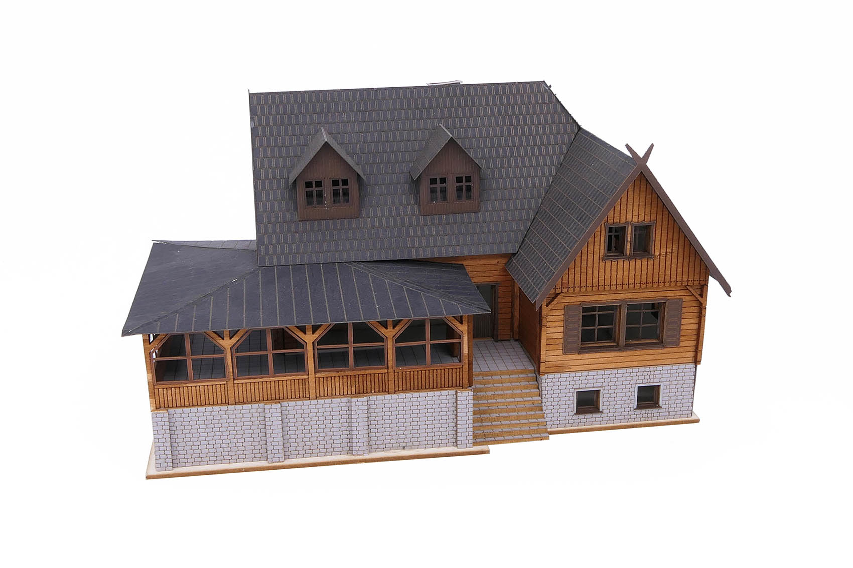 Model vyrobený Laser-Cut technologií. Materiál lepenka, barevný grafický karton, dřevo.