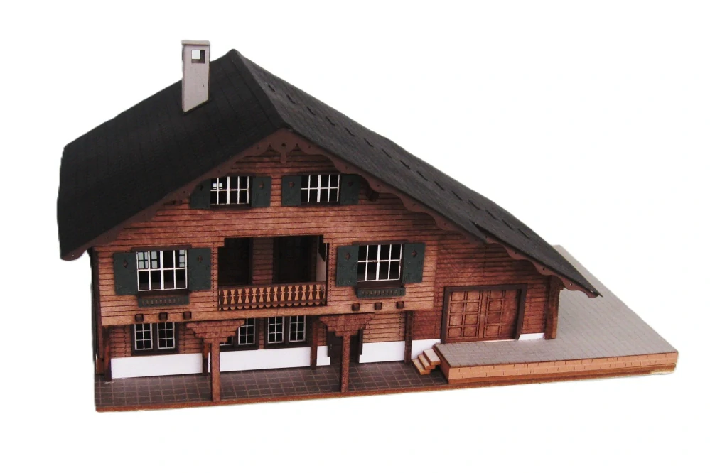 Model vyrobený Laser-Cut technologií. Materiál lepenka, barevný grafický karton, dřevo.