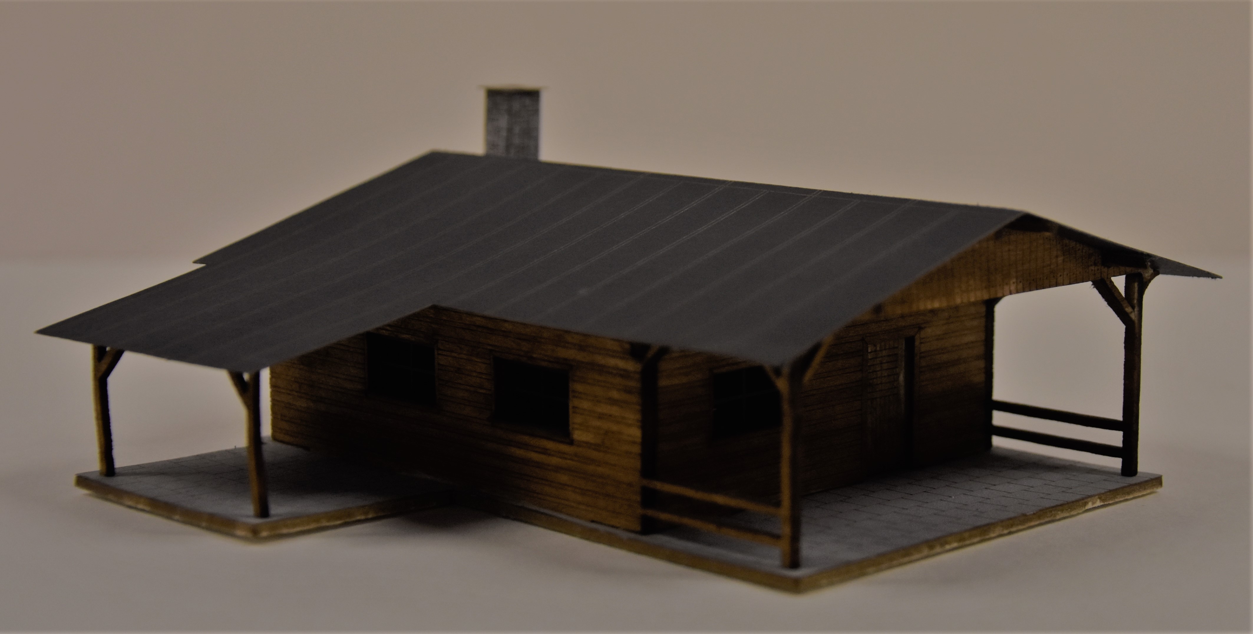Model vyrobený Laser-Cut technologií. Materiál lepenka, barevný grafický karton, dřevo.