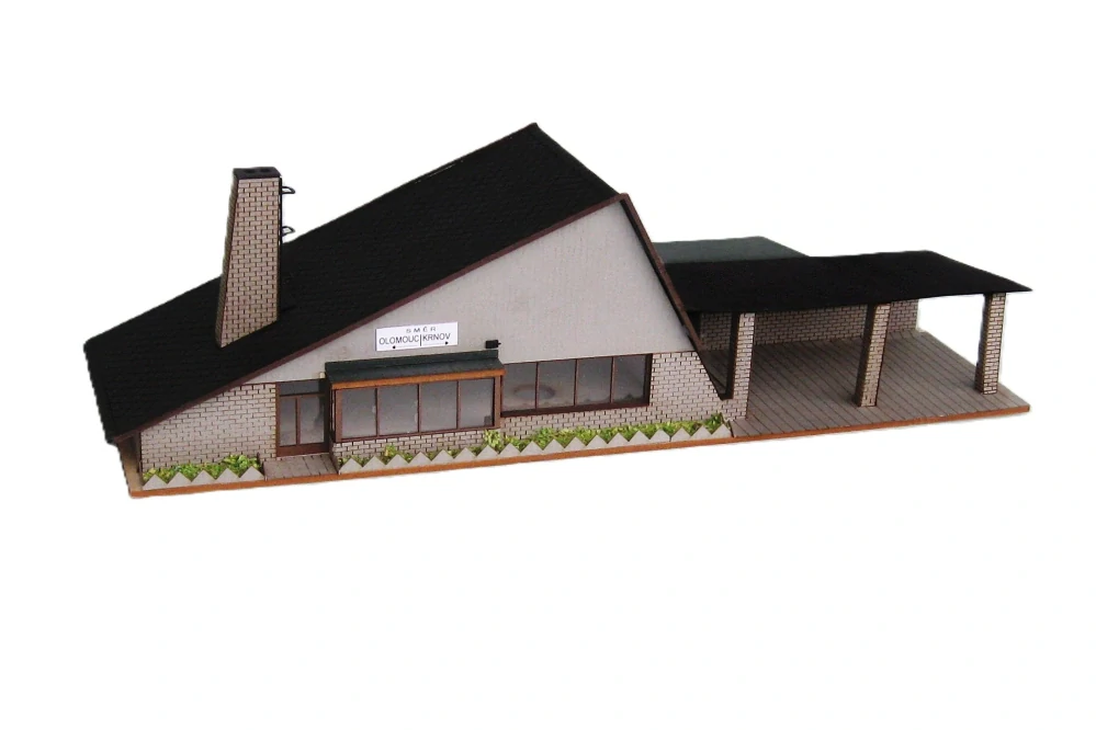 Model vyrobený Laser-Cut technologií. Materiál lepenka, barevný grafický karton, dřevo.